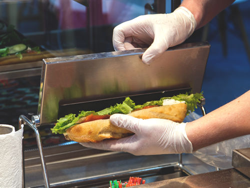 Puncture-prone vinyl gloves are commonly used in food service because of low cost. They can put glove wearers and food products at risk due to harmful chemical migration from the glove and/or microbial contamination release if the glove tears.